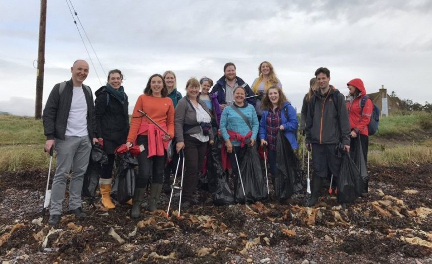Scottish Land Commission staff past and present engaged in community beach cleaning at Fortrose.