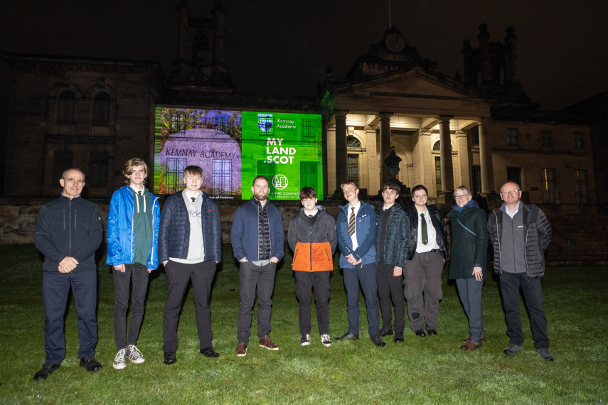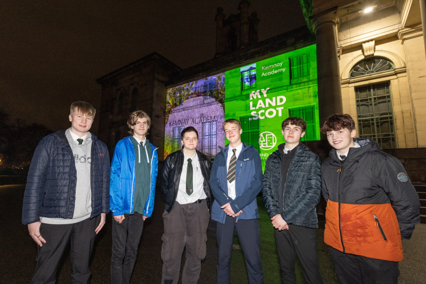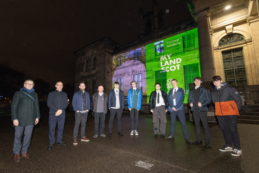 Pupils from Kemnay Academy travelled to the capital to watch a film they created on local land being projected onto the museum after being announced as winners of the Scottish Land Commission’s MyLand.Scot ‘My Land, My Story’ campaign.