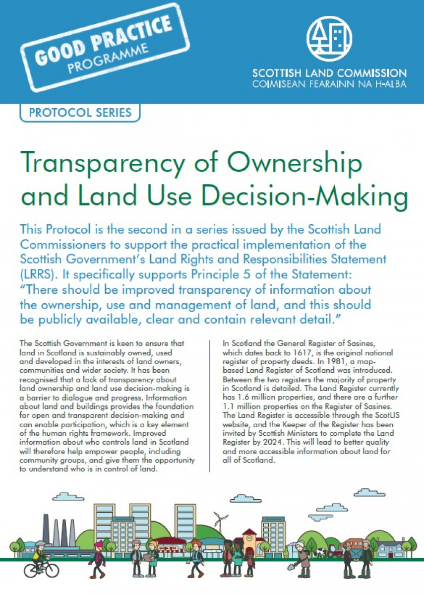 The protocol on ‘Transparency of Ownership and Land Use Decision-Making’ was published this week and it is the second in the good practice series issued by the Commission to support the practical implementation of the Scottish Government’s land rights and responsibilities statement (LRRS).