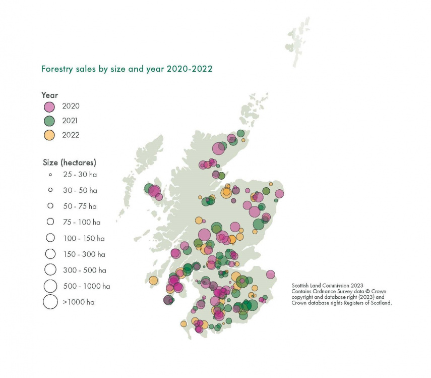 This latest report is based on land sales data from Registers of Scotland, which we enriched with industry data, in order to build a picture of what happened in the rural land market from 2020 to 2022. We focused on land sales larger than 25 hectares across three key land use types: farmland, forestry and estates.