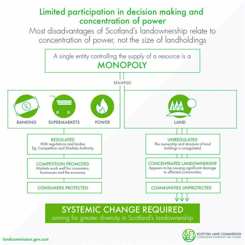We have carried out the most substantial investigation conducted into the impacts of this issue based on robust evidence about rural land ownership that shows how the concentration of social, economic and decision-making power significantly impacts communities across rural Scotland. We have made initial recommendations to Scottish Government to address the adverse effects identified, and to stimulate a more productive, diverse and dynamic pattern of rural land ownership.